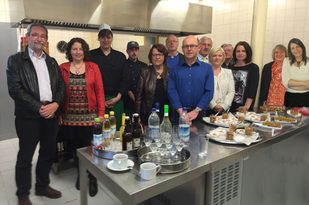 2,50 Euro kostet das Mittagessen für die Krippenkinder, erfuhr Kreisrat Sebastian Hutzenthaler auf die Frage nach den Kosten. Als zweites Standbein wird Catering angeboten und es lasse sich ein großes Interesse an vegetarischen und veganen Lebensmitteln erkennen. So richte man in Kürze eine komplett vegane Hochzeit aus, erfuhren die SPD-Mitglieder. Dass die Bio-Küche auch hervorragend schmeckt, davon konnten sich die Besucher überzeugen und verkosteten Bärlauch-Bruschetta, Linsensalat und Ziegenkäse-Blätterteig-Taler.