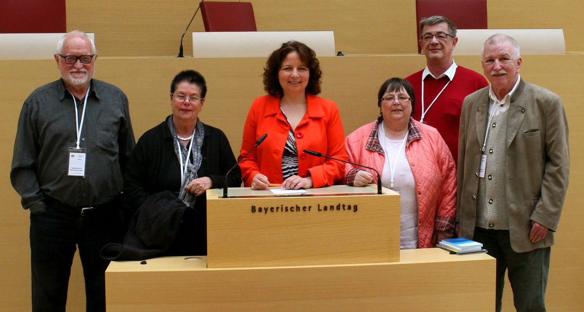 Diskutierten mit „ihrer“ Abgeordneten Ruth Müller (Mitte) im Landtag: Ingrid und Karlheinz Westenhuber (li) aus Wiesenfelden, Eva Maria und Eckehard Pischer aus Straubing und Theo Göldl aus Mitterfels.
