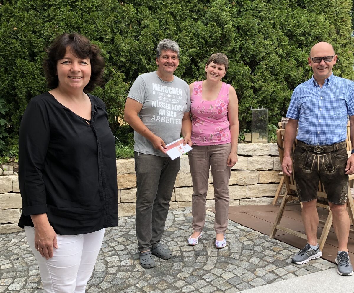 Am 7. Juli feierte der Neufahrner Bürgermeister Peter Forstner seinen 50. Geburtstag und wenige Tage später hatte er seine Fraktionskollegen der SPD-Kreistagsfraktion zu einem kleinen Umtrunk eingeladen. Die stellvertretende Fraktionsvorsitzende Ruth Müller, MdL und stellvertretender Landrat Sebastian Hutzenthaler gratulierten ihrem Fraktionschef. Forstner ist seit sechs Jahren Bürgermeister der Gemeinde Neufahrn und wurde in diesem Jahr zum ersten Mal in den Kreistag des Landkreises Landshut gewählt. „Außerdem bist Du als unser stellvertretender Vorsitzender der SPD im Landkreis Landshut eine wertvolle Stütze in der Arbeit der Partei“, bedankte sich die Kreisvorsitzende Ruth Müller bei ihm. Weil die Fraktionskollegen wissen, wie sehr ihm Neufahrn am Herzen liegt, gab es als Geschenk einen Gastronomie-Gutschein aus Neufahrn. Denn: „Wozu in die Ferne schweifen, wenn das Gute vor der Haustür liegt“, freute sich Peter Forstner zusammen mit seiner Ehefrau Monika über dieses Präsent mit Lokalcolorit.