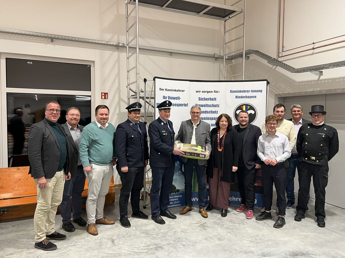 Auch die Freiwillige Feuerwehr Rimbach war mit ihrem Vorstand Alfons Seidl und Kommandant Robert Schwimmbeck erschienen – sie arbeiten eng mit den niederbayerischen Kaminkehrern zusammen. Besonders erfreulich: Martin Ecker, Vorstandsmitglied des Deutschen Energieholz- und Pellet-Verbands e. V. (DEPV) und Geschäftsführer der Firma HDG, Holzheizkessel aus Massing im Rottal, überreichte eine Spende von zwei Tonnen Pellets für das Feuerwehrhaus an die Freiwillige Feuerwehr – ein starkes Zeichen der Unterstützung für die ehrenamtlichen Einsatzkräfte.